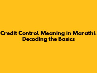 Credit Control Meaning In Marathi: Simplified Guide