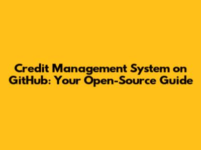 Credit Management System On GitHub: Your Open-Source Guide