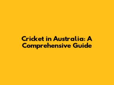 Cricket In Australia: A Comprehensive Guide