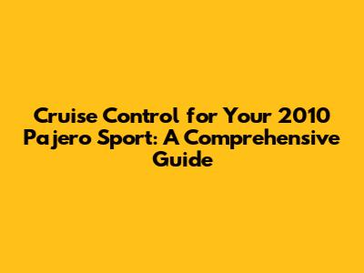 Cruise Control For Your 2010 Pajero Sport: A Comprehensive Guide