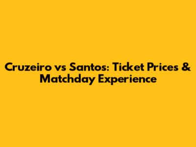 Cruzeiro Vs Santos: Ticket Prices & Matchday Experience