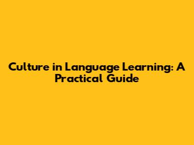 Culture In Language Learning: A Practical Guide