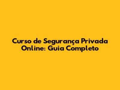 Curso De Segurança Privada Online: Guia Completo