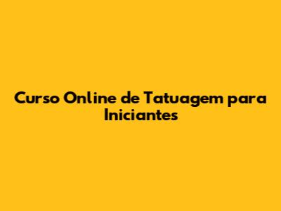 Curso Online De Tatuagem Para Iniciantes