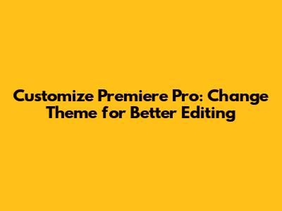Step-by-Step Guide: Changing the Premiere Pro Theme