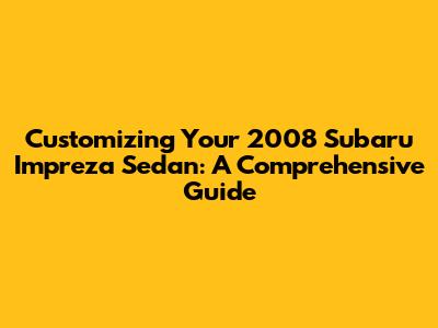 Customizing Your 2008 Subaru Impreza Sedan: A Comprehensive Guide