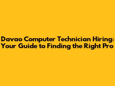 Davao Computer Technician Hiring: Your Guide To Finding The Right Pro