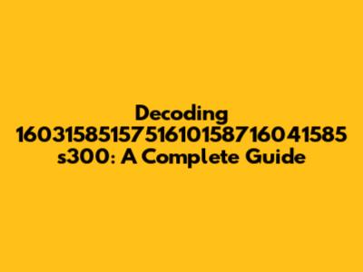 Decoding 1603158515751610158716041585 S300: A Complete Guide