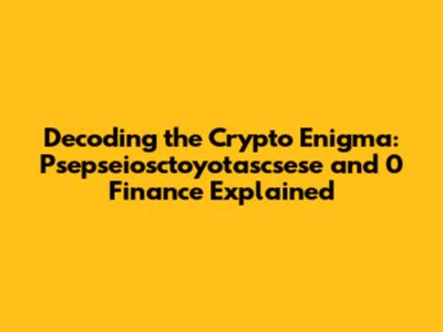 Decoding Crypto: Psepseiosctoyotascsese & 0 Finance Explained