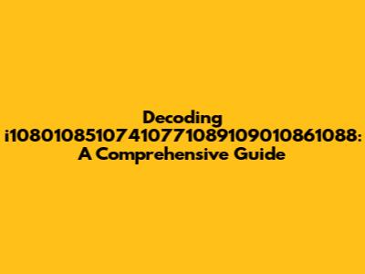 Decoding I10801085107410771089109010861088: A Comprehensive Guide