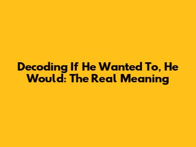 Hey guys! Ever heard someone say, "If he wanted to, he would"? It's a phrase that cuts right to the chase, isn't it? It's packed with a lot of unspoken meaning, and today, we're going to dive deep into what it truly implies. We'll unravel the layers of this statement, exploring its context, hidden messages, and the emotional impact it carries. This isn't just about understanding the words; it's about grasping the underlying truth it reveals about someone's actions and intentions. So, buckle up, because we're about to decode this powerful phrase together. This phrase often surfaces in discussions about relationships, effort, and commitment, where actions speak louder than words. So, let's get into the nitty-gritty of why people use this phrase and what they're actually trying to convey. We'll look at the psychology behind it, the scenarios where it's most common, and how you can apply this understanding to your own life. Get ready to have your perspectives shifted!