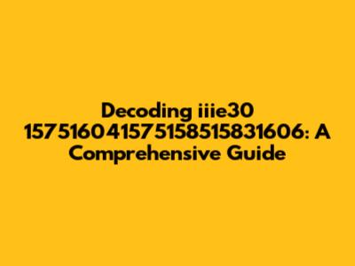 Decoding Iiie30 157516041575158515831606: A Comprehensive Guide