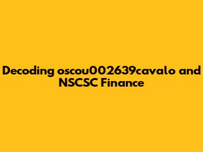 Decoding Oscou002639cavalo And NSCSC Finance