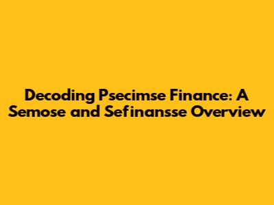 Decoding Psecimse Finance: A Semose And Sefinansse Overview