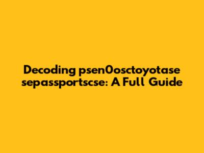 Decoding Psen0osctoyotase Sepassportscse: A Full Guide