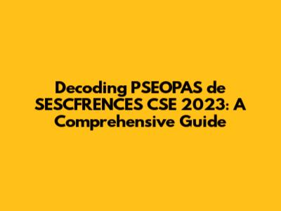 Okay, let's start with the basics. "PSEOPAS" isn't exactly a common term, right? But fear not, we'll crack the code. In this context, it appears to be an acronym or abbreviation. Without a definitive official meaning readily available, we have to use the other words within the phrase to deduce what PSEOPAS is. It is likely related to the organization or entity connected to "SESCFRENCES" and the CSE of the year 2023. Let's dig deeper to see if we can find out what it means. It's like a puzzle, and we're the detectives! We are trying to find out what PSEOPAS is related to. The keywords here are SESCFRENCES and CSE 2023. The other words might hint at the kind of activity it is related to. Let's consider some possibilities and break it down. Perhaps it represents a specific program, project, or department within a larger organization. It could also refer to a set of guidelines, regulations, or a framework related to the activities linked to the other words in the title. Understanding what PSEOPAS stands for will be key to understanding the context and purpose of the phrase. If it is an acronym, then it might stand for something like "Preliminary System Evaluation of Operational Procedures for Active Securities" or something entirely different. The best way to decode it is to start with the other words in the title.