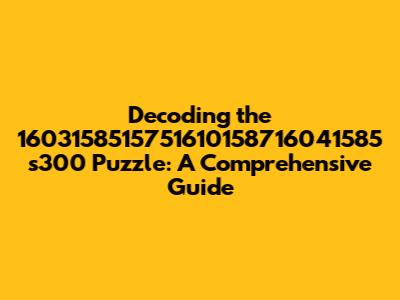 Decoding The 1603158515751610158716041585 S300 Puzzle: A Comprehensive Guide