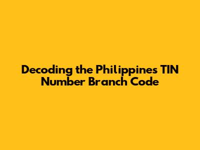 Decoding The Philippines TIN Number Branch Code