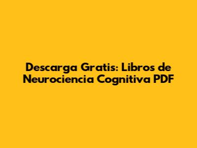 Descarga Gratis: Libros De Neurociencia Cognitiva PDF