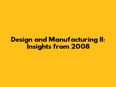 Design And Manufacturing II: Insights From 2008
