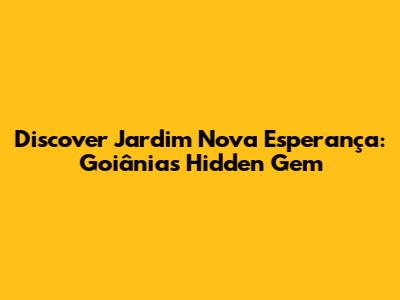 Hey guys! Ever heard of Jardim Nova Esperança in Goiânia? If not, you're in for a treat. This neighborhood is a real hidden gem, packed with local charm and a vibe that's totally unique. Let's dive into what makes Jardim Nova Esperança so special and why you should totally check it out.