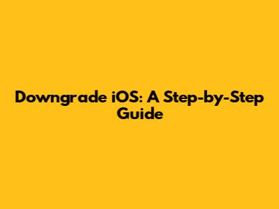 Downgrade IOS: A Step-by-Step Guide
