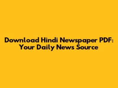 Download Hindi Newspaper PDF: Your Daily News Source