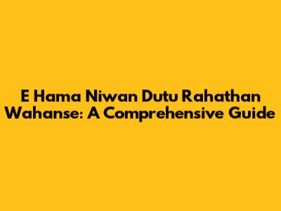E Hama Niwan Dutu Rahathan Wahanse: A Comprehensive Guide