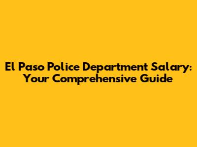 El Paso Police Salary: What You Need To Know
