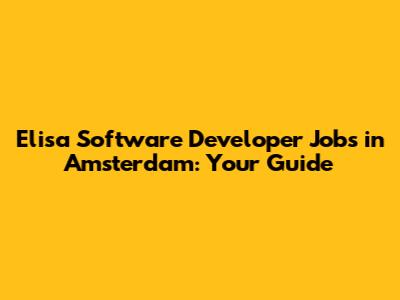 Elisa Software Developer Jobs In Amsterdam