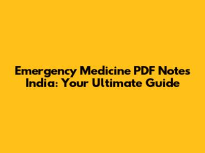 Emergency Medicine PDF Notes In India: A Comprehensive Guide