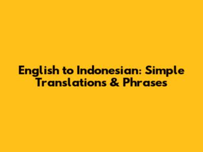 English To Indonesian: Simple Translations & Phrases