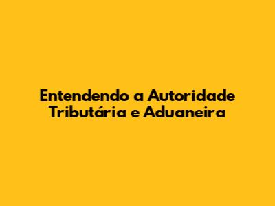 Entendendo A Autoridade Tributária E Aduaneira
