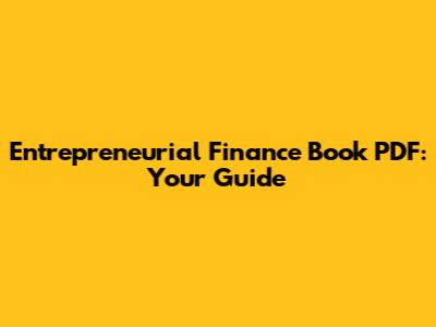 Entrepreneurial Finance Book PDF: Your Guide