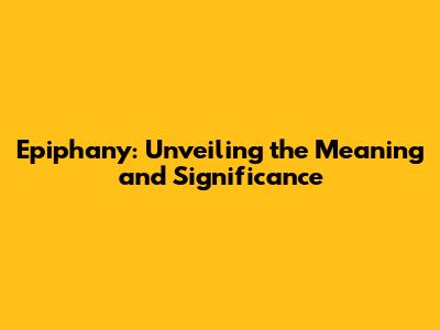 Epiphany: Unveiling The Meaning And Significance