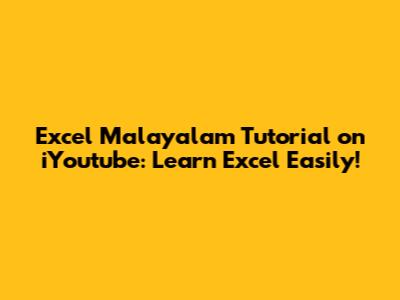 Excel Malayalam Tutorial On IYoutube: Learn Excel Easily!