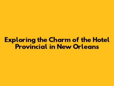 Exploring The Charm Of The Hotel Provincial In New Orleans