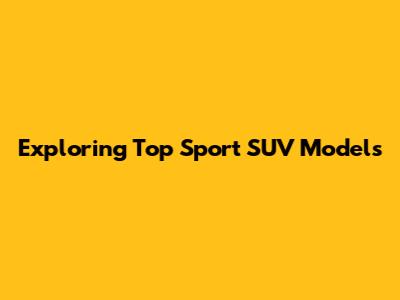 Exploring Top Sport SUV Models