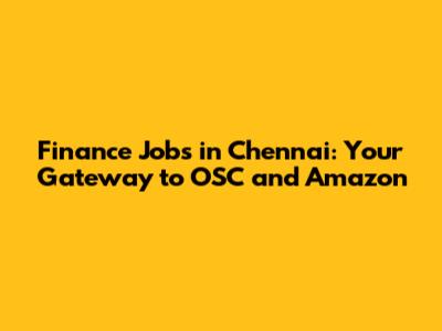 Finance Jobs In Chennai: OSC & Amazon Opportunities