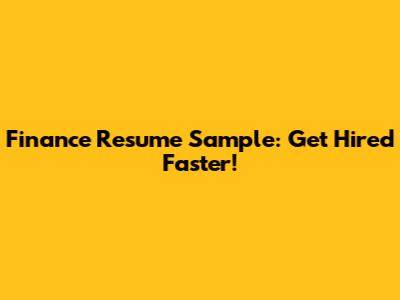 Finance Resume Sample: Get Hired Faster!