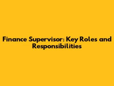 Finance Supervisor: Key Roles And Responsibilities
