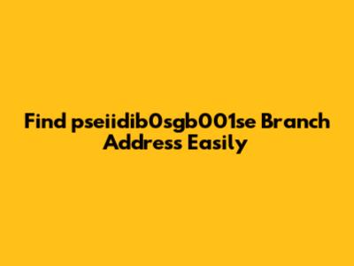 Find Pseiidib0sgb001se Branch Address Easily