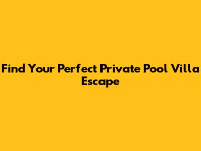 Find Your Perfect Private Pool Villa Escape