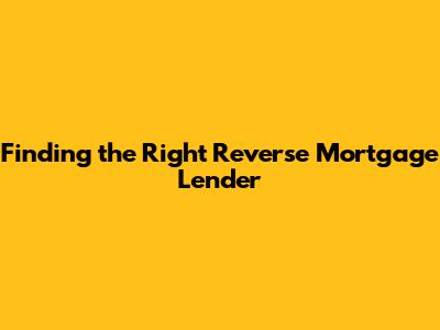 Finding The Right Reverse Mortgage Lender