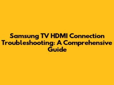 Fix Samsung TV HDMI Connection Issues