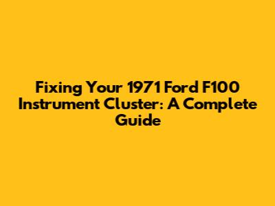 Fixing Your 1971 Ford F100 Instrument Cluster: A Complete Guide