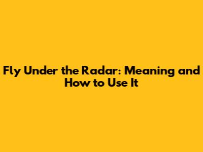 Fly Under The Radar: Meaning And How To Use It