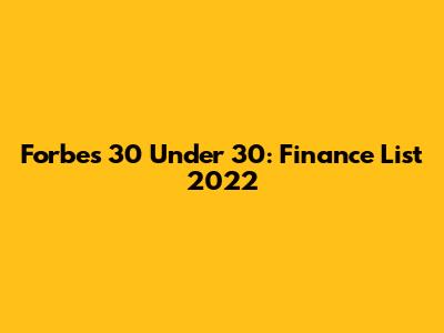Forbes 30 Under 30: Finance List 2022