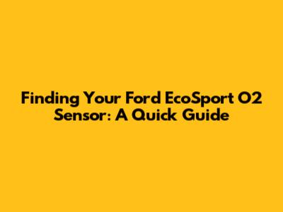 Ford EcoSport O2 Sensor Location Guide