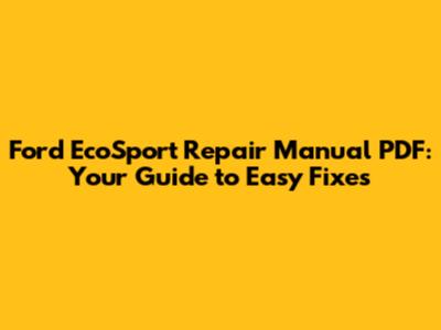Ford EcoSport Repair Manual PDF: Your Guide To Easy Fixes
